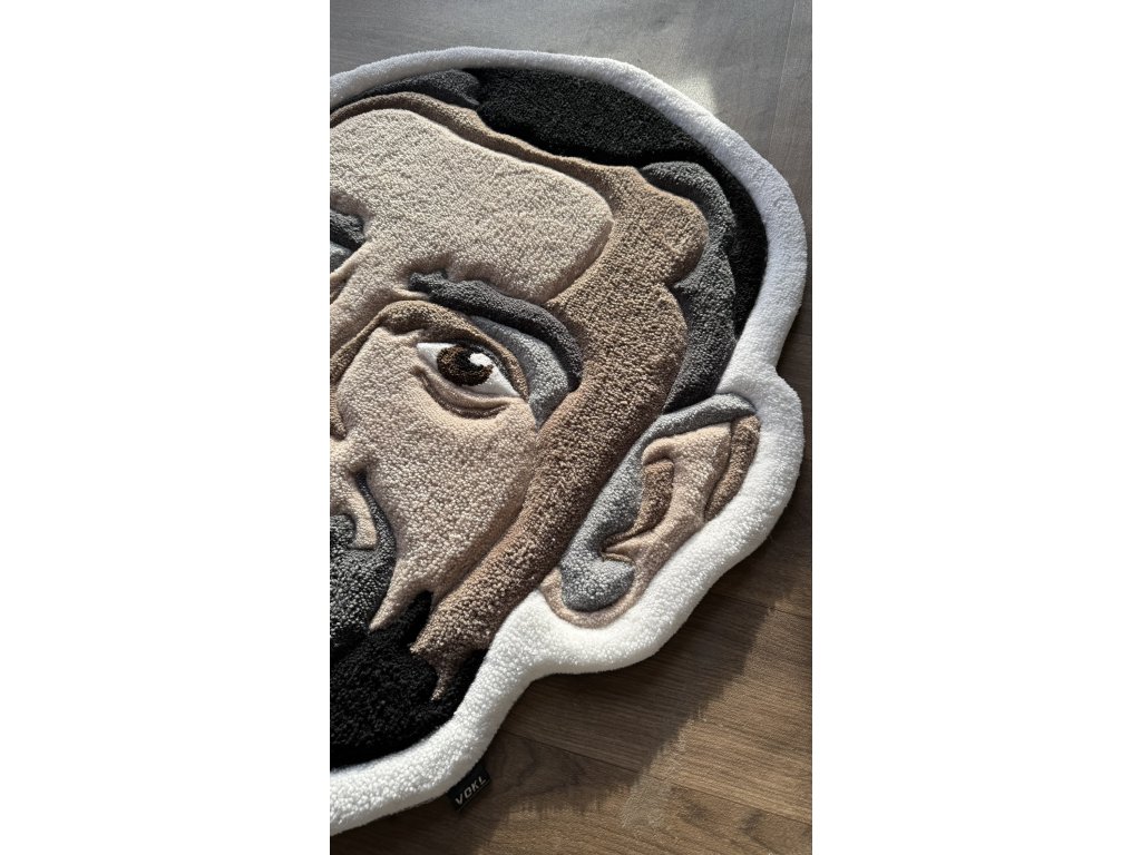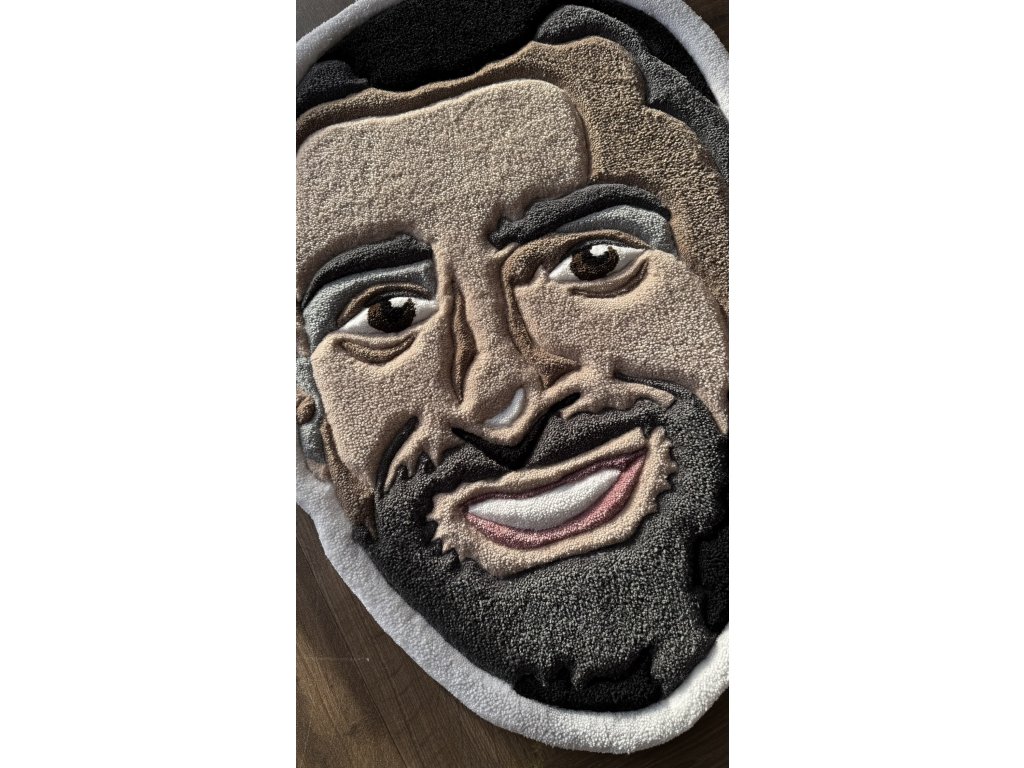 Tvarovaný design: Koberec není jen obyčejný obdélník, ale kopíruje obrysy portrétu, což mu dodává unikátní vzhled.